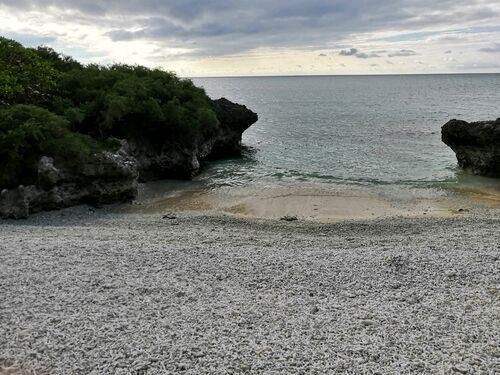 珊瑚の浜と最南端の碑(沖縄離島の八重山諸島の波照間島)