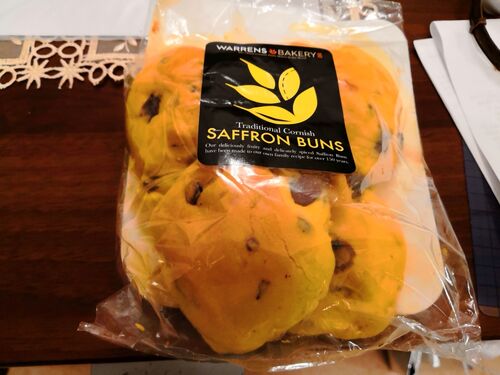 イギリスのコーンウォールの郷土食品2つを食べました。どちらも日本人にはあまり知られてないですね。まず一つ目は、サフラン・パンです。高級食材のサフランがはいっていて、黄色いパンです。干しぶどうも入っています。食べてみると、サフランというスパ…